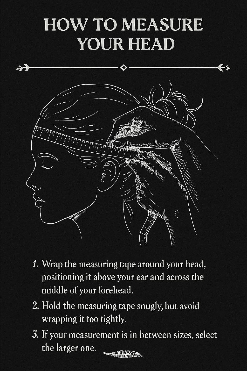 ●Your head size is the circumference of your head measured just above your ears. Place the tape measure around the middle of your forehead and the widest part of the back of the head. Your size is the length in centimeters. If unsure, please feel free to ask.