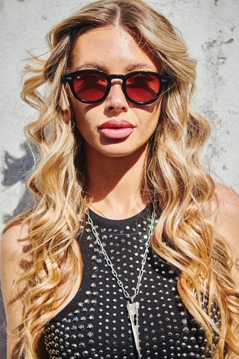 The polarized rounded lenses, subtle keyhole bridge, and iconic acetate frame define a design that’s both rebellious and refined.